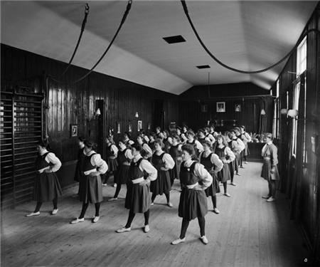 What kinds of rules do you think the girls shown in this old photograph might have had to follow during gym class?