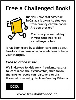 Freedom to Read week was celebrated last week but challenged books continue to be pulled off of bookshelves. Visit Book Crossing at “Freedom to Read” to find out how you and your students can set a challenged book free at any time of the year.